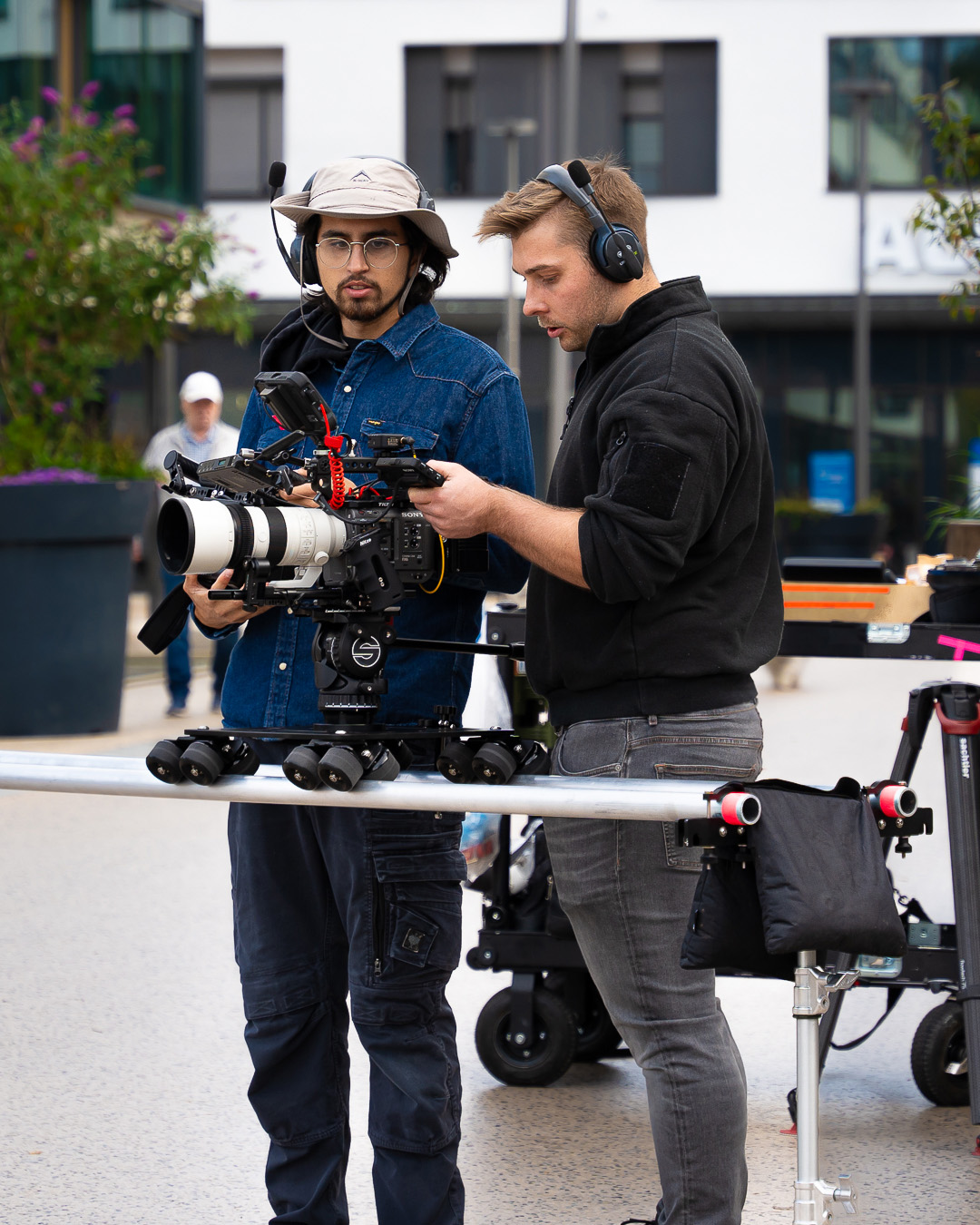 Hier erhalten Sie einen Einblick hinter die Kulissen der Produktion. Die Aufnahmen zeigen den Dreh der drei Werbespots für die Kampagne „KOM ins Zentrum“ sowie Impressionen aus dem Fotostudio. Die Porträts für die Großflächenplakate entstanden vor neutralweißem Hintergrund unter präziser Lichtsetzung und wurden anschließend in Adobe Photoshop zu den finalen Plakatmotiven zusammengesetzt. So entstand aus filmischem und fotografischem Teamwork eine stimmige, crossmediale Werbekampagne für die Stadt Geretsried.