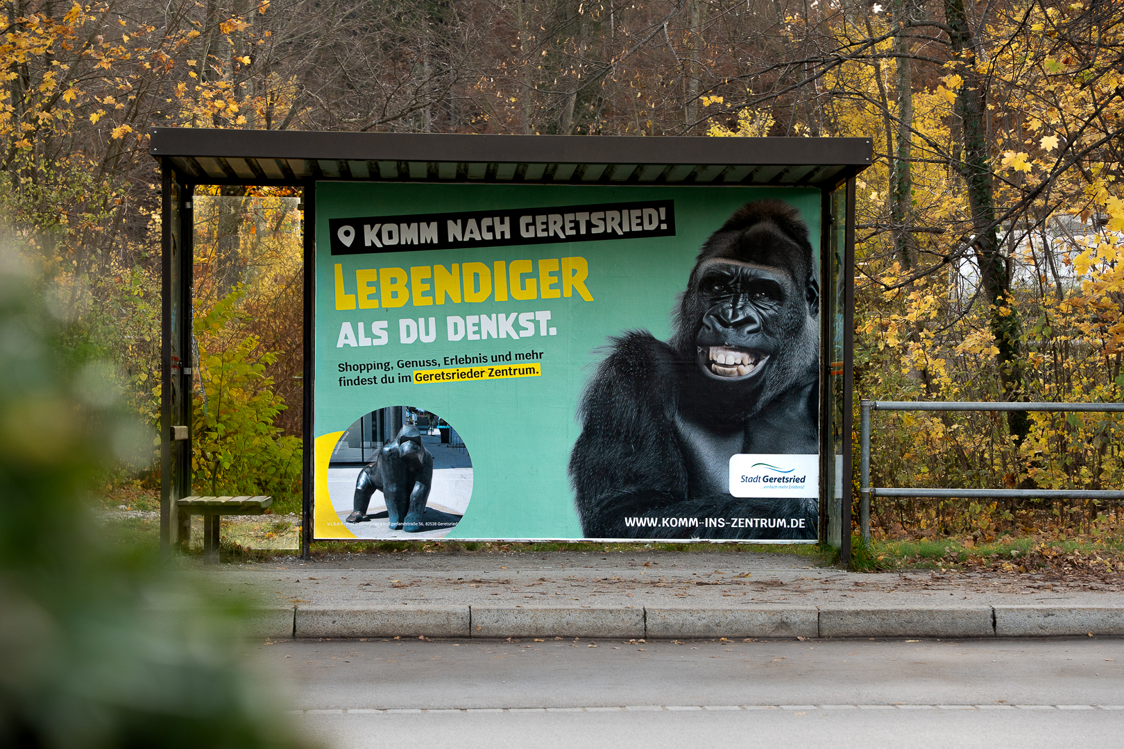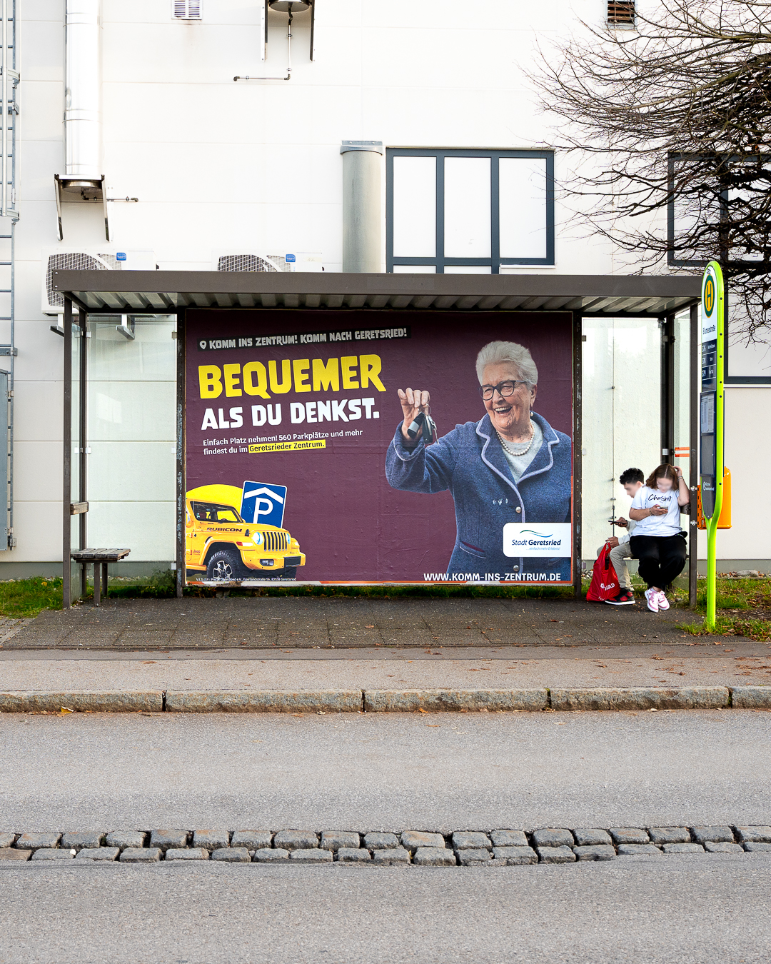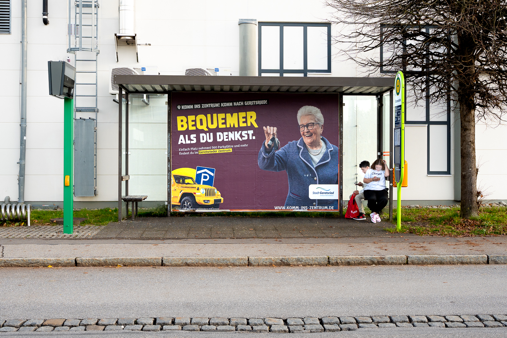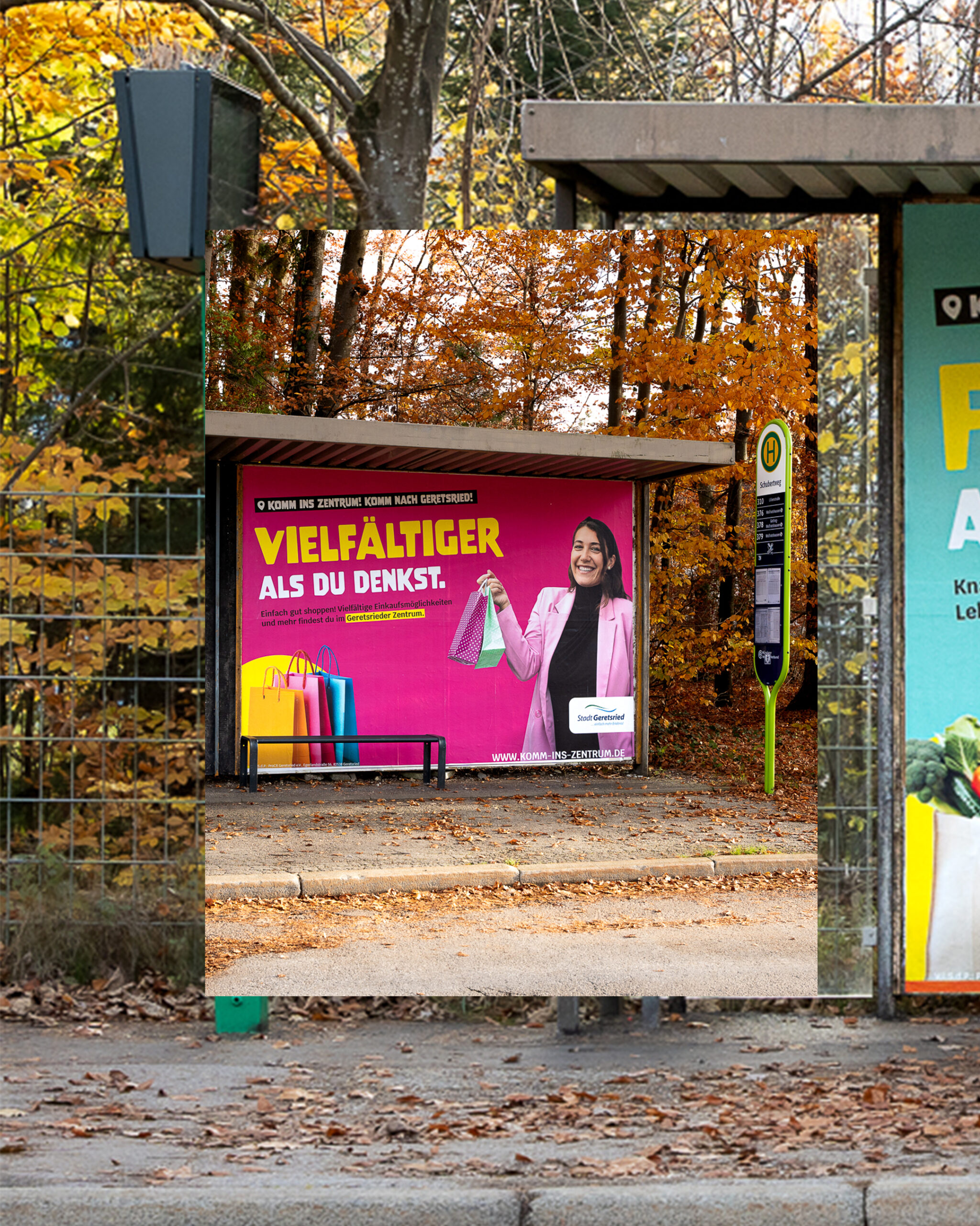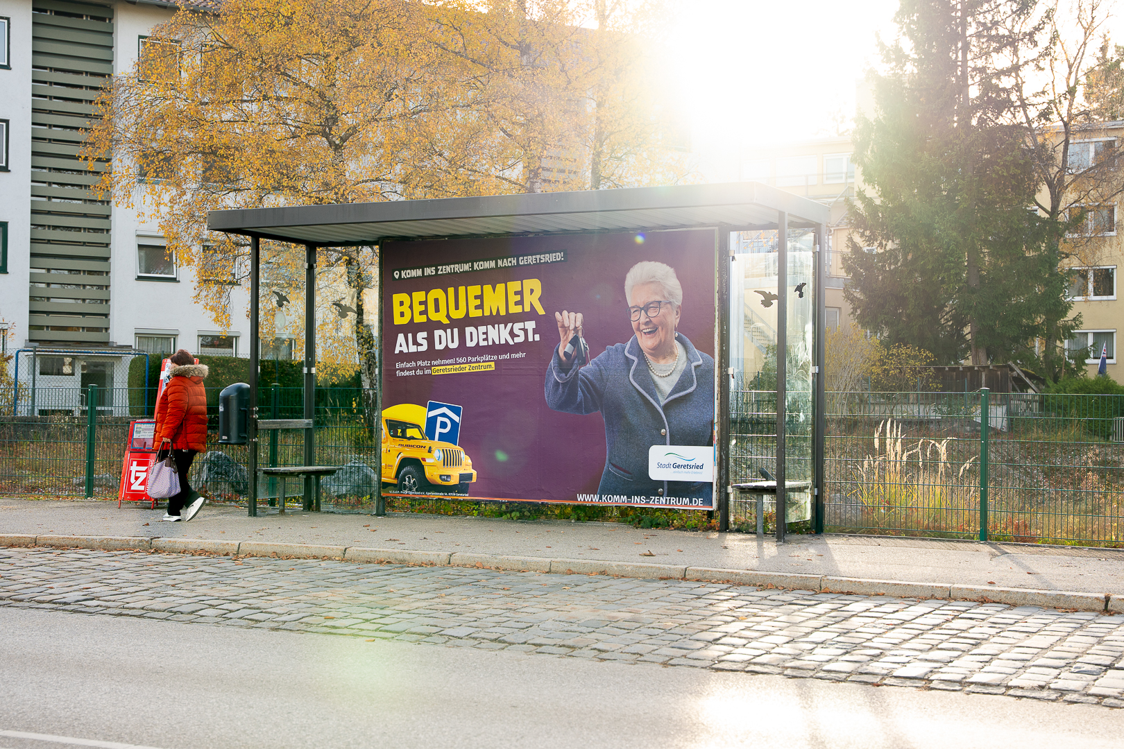 Für die City-Kampagne ProCity Geretsried „KOM ins Zentrum“ in der Stadt Geretsried haben wir gemeinsam mit der Werbe- und Kreativagentur Stileffekt GmbH die gesamte Umsetzung der Kanpangne übernommen – von großflächigen Plakaten über Bushaltestellen-Werbung bis hin zu drei hochwertig produzierten Werbespots. Die visuellen Medien sind im gesamten Stadtgebiet sowie im Landkreis an Plakatwänden und Stationen präsent und unterstreichen den professionellen Auftritt einer starken Innenstadt-Marke.
