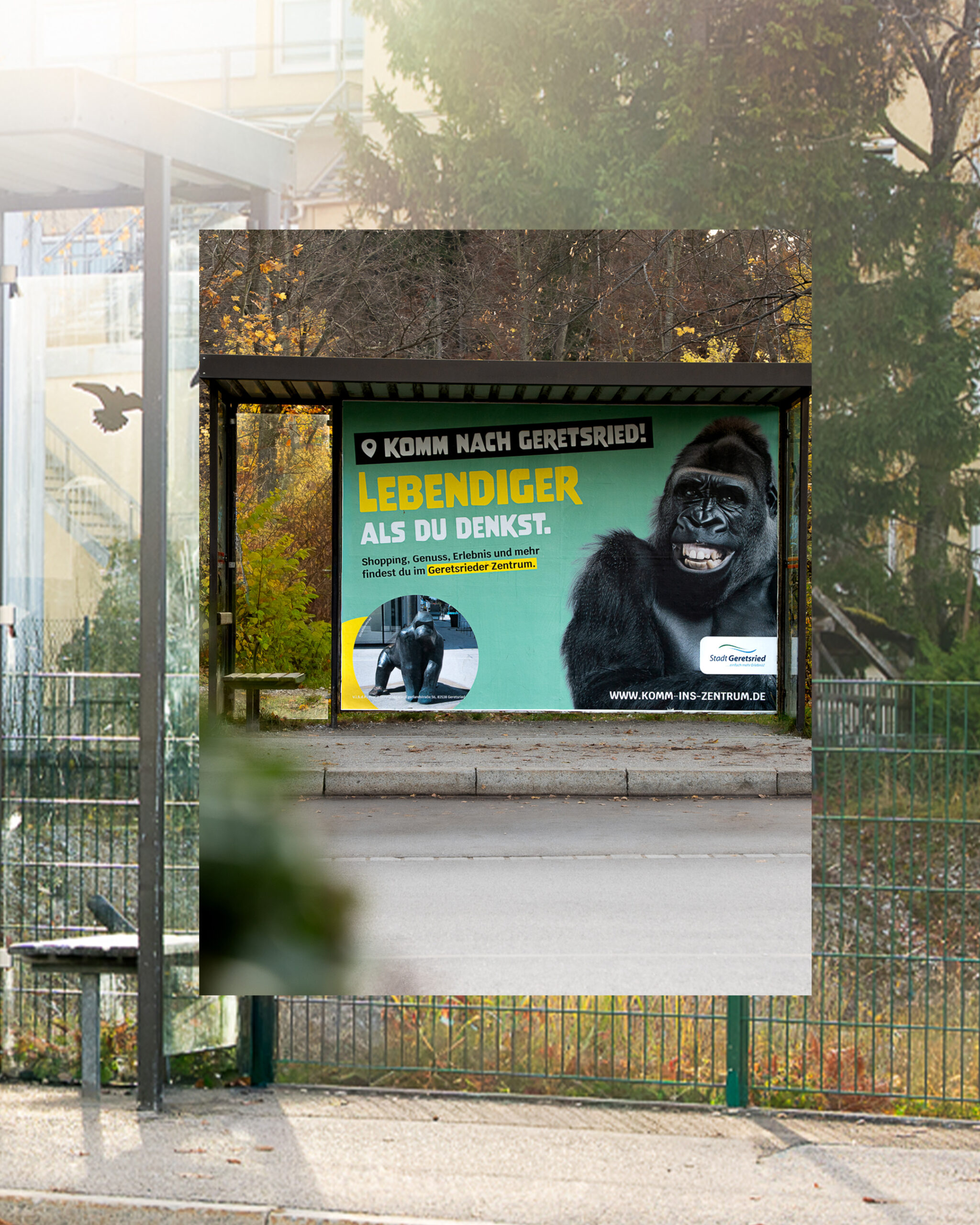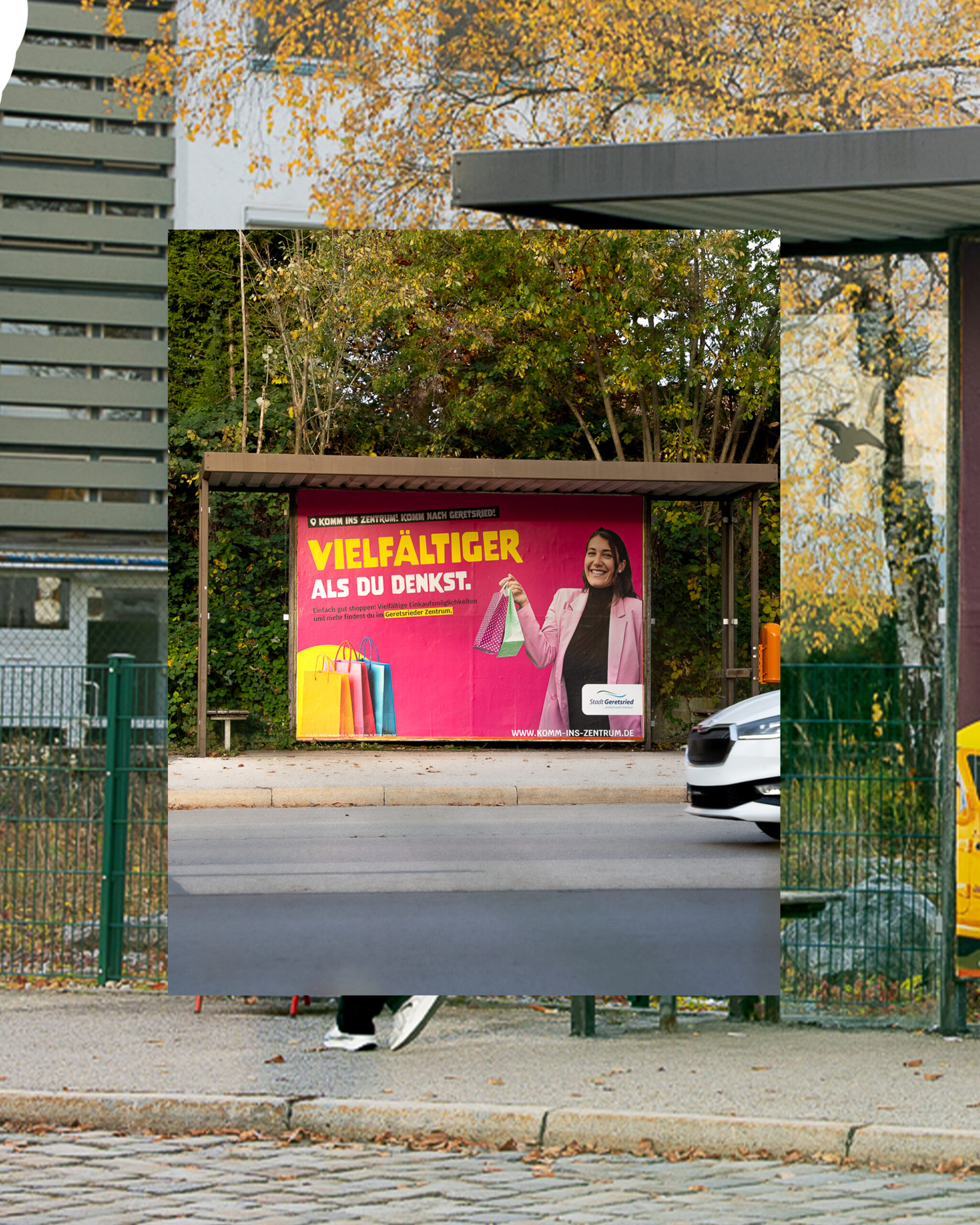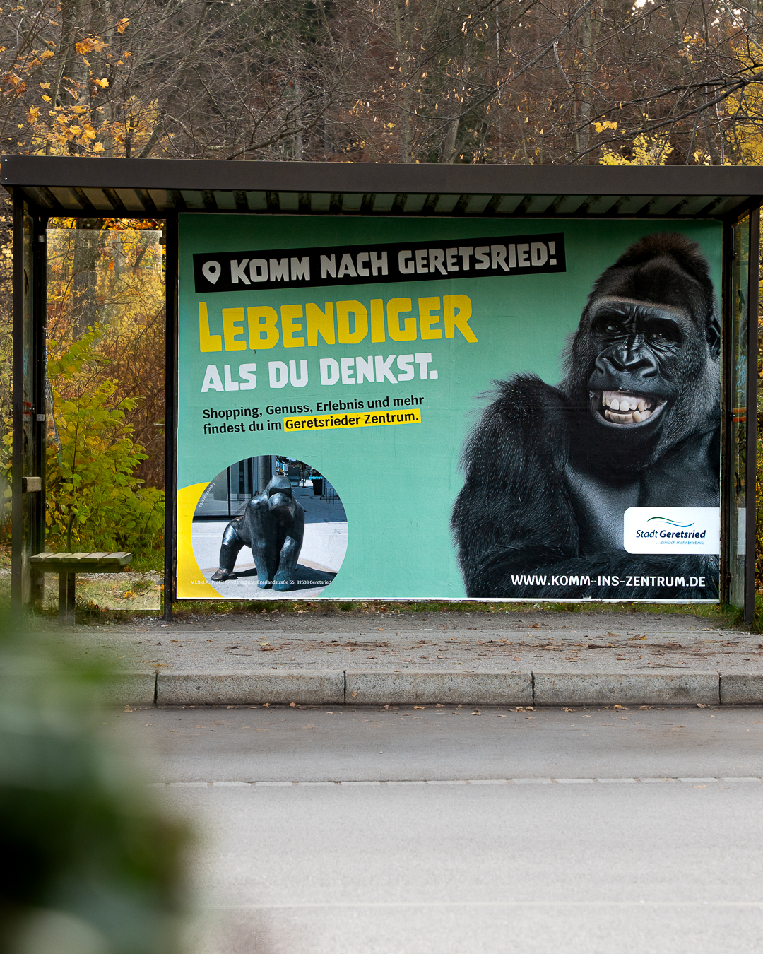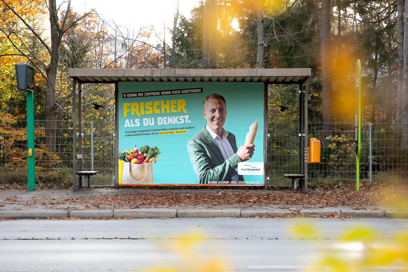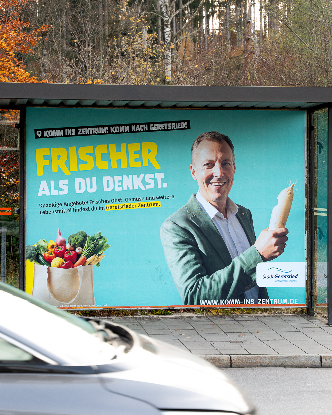 Für die City-Kampagne ProCity Geretsried „KOM ins Zentrum“ in der Stadt Geretsried haben wir gemeinsam mit der Werbe- und Kreativagentur Stileffekt GmbH die gesamte Umsetzung der Kanpangne übernommen – von großflächigen Plakaten über Bushaltestellen-Werbung bis hin zu drei hochwertig produzierten Werbespots. Die visuellen Medien sind im gesamten Stadtgebiet sowie im Landkreis an Plakatwänden und Stationen präsent und unterstreichen den professionellen Auftritt einer starken Innenstadt-Marke.